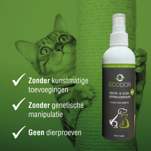 EcoPet elimina macchie/eliminaodori è uno spray biologico che elimina odori sgradevoli e macchie in posti, dove il Suo animale si trattiene più volentieri, per esempio cucce, cassette dei gatti (dove loro di solito fanno i loro bisogni), gabbie di roditori ecc.